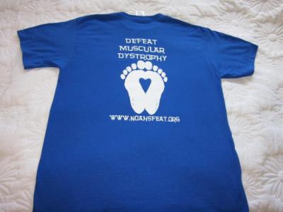 Shirts are only $15 with free shipping in the continental U.S. A small shipping fee will be charged for out of country orders. All proceeds go to Duchenne Muscular Dystrophy research. You may use PayPal or send check or money order to: Noah's Feat P.O.Box 7685 Flint, Michigan 48507. Thank you so much!